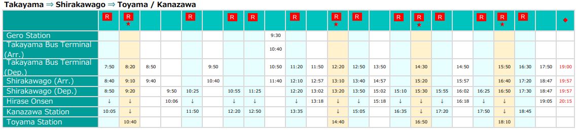 ส่วนการเดินทางไปเที่ยวเมืองชิราคาวาโก จุดหมายหลักของทริปนี้ สามารถจองได้ที่เวบ https://www.nouhibus.co.jp/english/ หรือผู้ที่ถือ jr pass นี้จะต้องโทรไปจองที่เบอร์ +81 577 32 1688 เท่านั้น ใช้เวลาโทรไม่เกิน 5 นาทีก็ได้รหัส booking ที่จะไปยื่นแลกตั๋วที่โน่นอีกที
