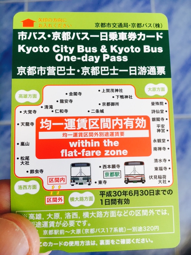การเดินทางในเกียวโตผมใช้ตั๋ว Kyoto one-day pass ราคา 500 เยน สามารถนั่งรถเมล์ในเกียวโตได้ไม่จำกัดเที่ยว