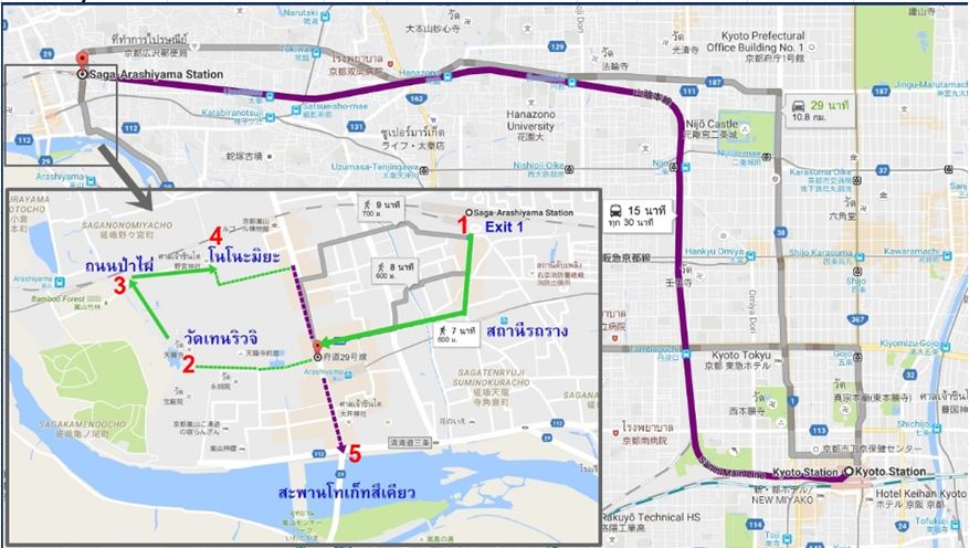 เส้นทางที่ผมจะเดินทางเที่ยวเกียวโต 1 วัน (ขออนุญาตเอารูปผังเดินทางจากเครดิตสมาชิกพันทิบมาประกอบข้อมูลครับ) เอาไปศึกษาดูนะครับ