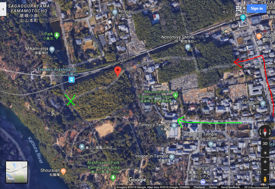 5.ผมรีบอะครับ ต้องการเที่ยวแค่ 1ส่วน3 แล้วไป สะพานโทเง็ตสึเคียวต่อ ถ้าออกมาทางเดิมจะเร็วกว่าไหมครับ (วิธีเดินทางคือปั่นจักรยาน)