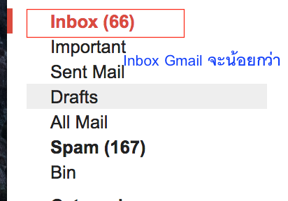 แต่หน้าจอของ Gmail มันจะมีแต่เฉพาะ Inbox (พวก Junk email มันก็จะอยู่ใน Junk)