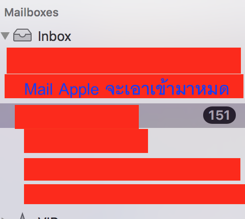 คราวนี้ Inbox ในหน้าต่างของโปรแกรม Mail มันลาก Mail มาทั้งหมด (ALL MAIL)