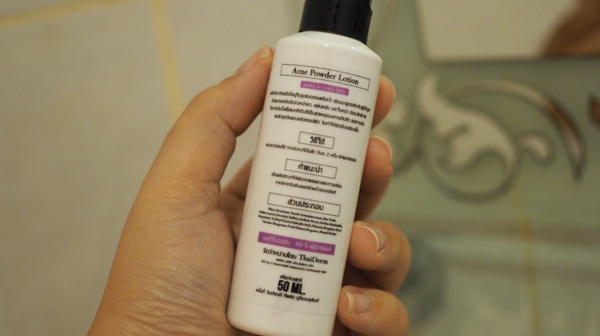 ด้านหลังของขวดเค้าก็จะมีบอกสรรพคุณว่าเค้าเป็นผลิตภัณฑ์ลดสิวที่อยู่ในรูปแบบของแป้งน้ำ สำหรับผู้มีปัญหาสิวและรอยดำบริเวณหน้าอก, แผ่นหลัง และบริเวณใบหน้า ช่วยยับยั้งเชื้อแบคทีเรียที่เป็นสาเหตุของการเกิดสิว ช่วยลดความมัน ลดการอุดตัน ช่วยผลัดเซลผิว ให้ผิวเรียบเนียนขึ้น เออออ เริดดด