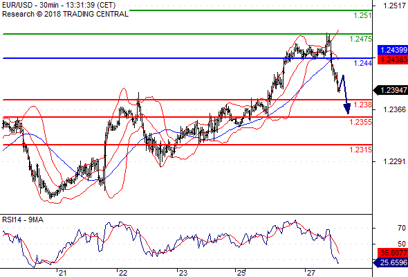 จุดที่ต้องการ: สถานะขายต่ำกว่า 1.2440 เป้าหมายต่อไปที่ 1.2380 และ 1.2355
