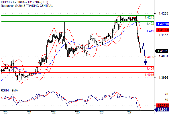 จุดที่ต้องการ: สถานะขายต่ำกว่า 1.4190 เป้าหมายต่อไปที่ 1.4085 และ 1.4040