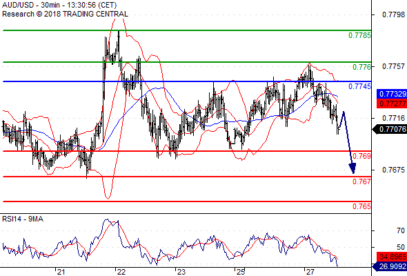 จุดที่ต้องการ: สถานะขายต่ำกว่า 0.7745 เป้าหมายต่อไปที่ 0.7690 และ 0.7670