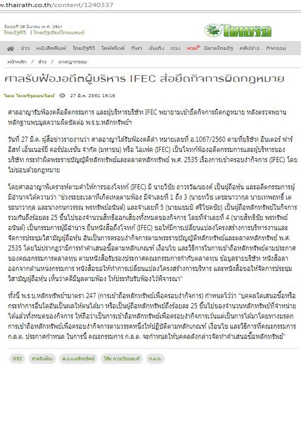 ศาลประทับรับฟ้องคดีครอบงำกิจการ #IFEC