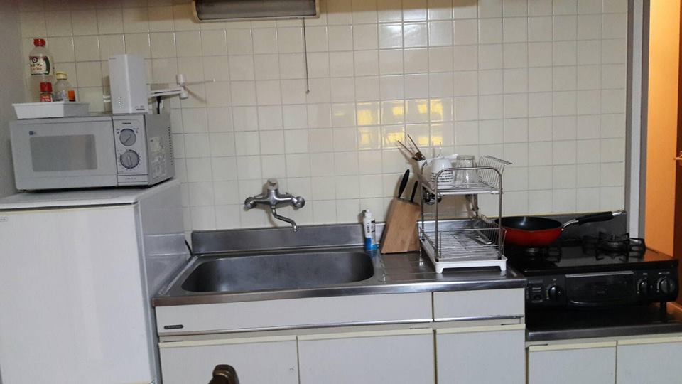 ที่พักของเราเป็น Airbnb ค่ะ เราจองไว้ 3 คืนเลย เดินเท้าฝ่าสายฝนจากสถานีนัมบะตามพิกัดไปประมาณ 20 นาที ค่ะ
