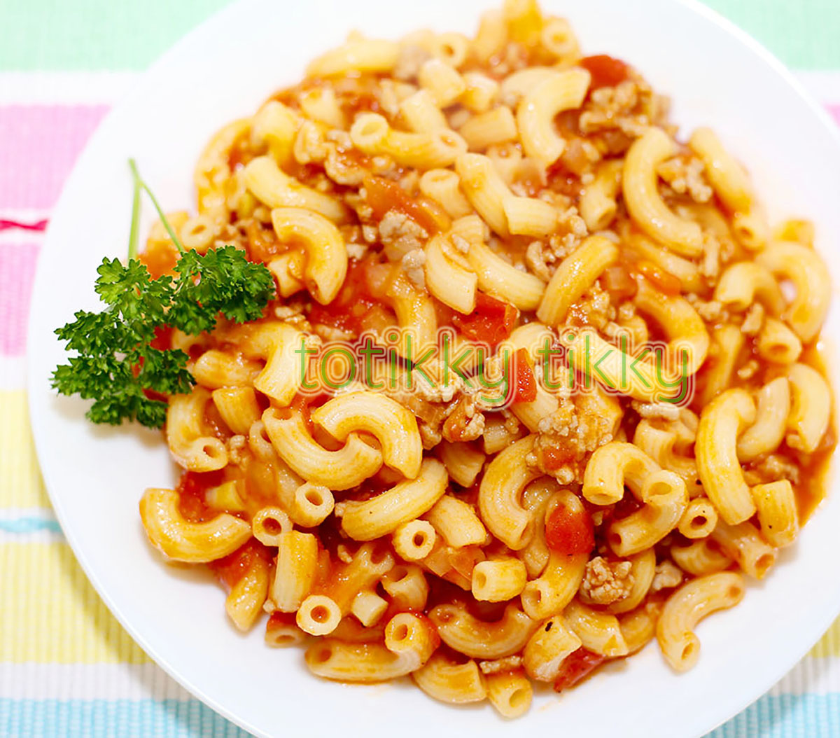ผัดมักกะโรนีซอสมะเขือเทศหมูสับ