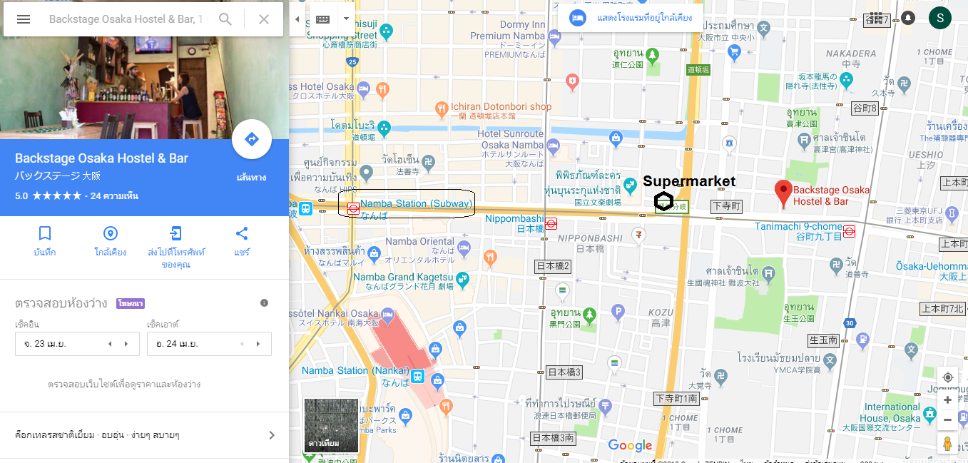 เริ่มจากไปทำงานที่เกียวโต 1 สัปดาห์ก่อน แล้วผมขออยู่เที่ยวโอซาก้าต่อ ก็เดินทางคนเดียวเลยอยากลองพักแบบ Budget ดู ลงเอยที่ Backstage Osaka Hostel & Bar จองได้จาก Airbnb คืนละ 680 บาทไทย 2 คืนรวม 1,360 บาท ดูจากรีวิวทั่วไปถือว่าผ่าน