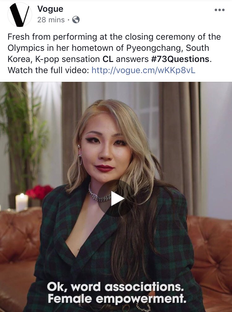 CL เป็นไอดอลเกาหลีคนแรกที่ลงใน 73 Questions ของ vogue อเมริกาค่ะ