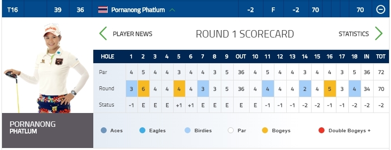 ทำไปถึง 6 เบอร์ดี้ เสียแค่ 1 แต่ 9 หลุมหลัง ทำได้แค่ 2 เบอร์ดี้ แต่ก็คืนสนามไปหมด เสีย 2 โบกี้