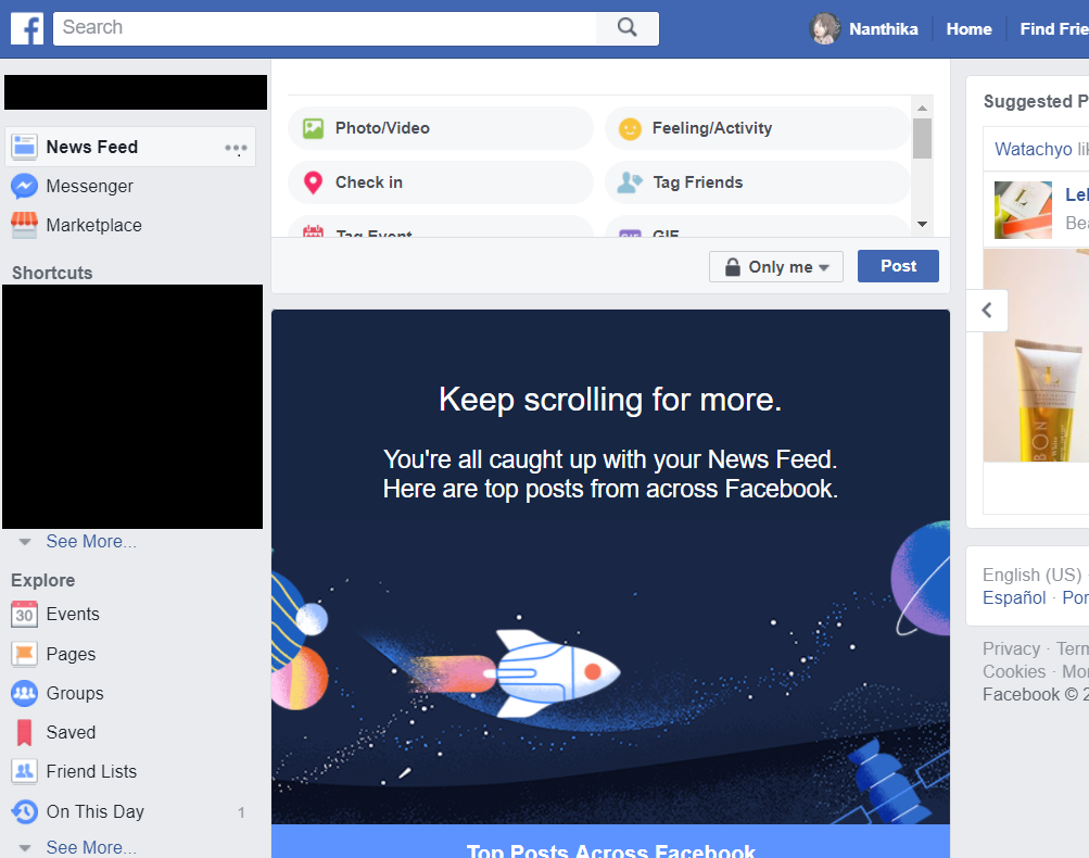 suggestion ใน facebook ไม่ขึ้น ต้องไปเปิดตรงไหนคะช่วยที ??