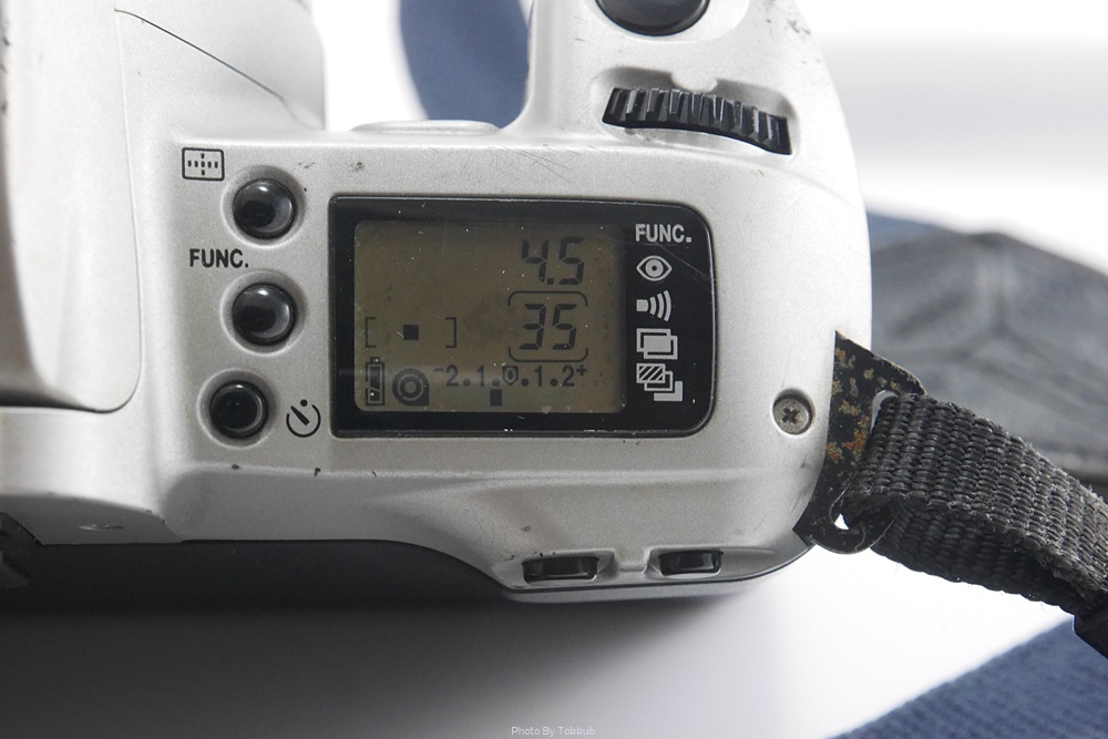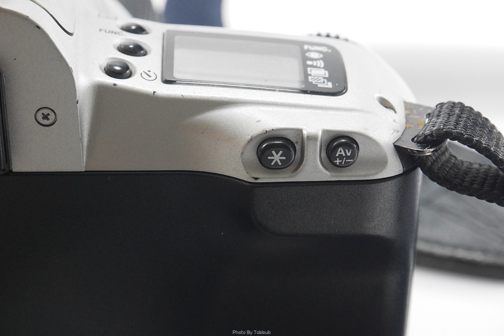 ด้านบนของกล้อง ฝั่งซ้ายเป็นส่วน Dial ปรับโหมดต่างๆมีมาครบ PASM Auto และโหมด SCENE ส่วน L เอาไว้ล็อคกล้องเมื่อปรับไปที่ L จะไม่สามารถใช้ได้ ส่วน ISO ก็เอาไว้ปรับค่า ISO ตามชนิดของฟิลม์ที่เราใส่ใช้งาน [แต่จากที่ผมลอง ใส่ฟิลม์แล้วมันตั้ง Auto ISO ให้เองเลยครับ แต่เช็คทุกครั้งเพื่อไม่ให้ผิดพลาด] ฝั่งขวาเป็นจอ Information ที่บอกค่าต่างๆของกล้องรวมทั้งสเกลวัดแสง และสามารถใช้คำสั่งอื่นได้เช่นซ้อนภาพ ถ่ายภาพโนราม่า บลาๆ สองปุ่มด้านหลัง ปุ่มทางขวาไว้ปรับค่าชดเชยแสง ส่วนปุ่มซ้ายไม่ได้ใช้เลยไม่ทราบครับ แนะนำอ่านคู่มือเพิ่มเติมดีกว่า ช่องใส่ถ่านอยู่ใต้กริ๊บ