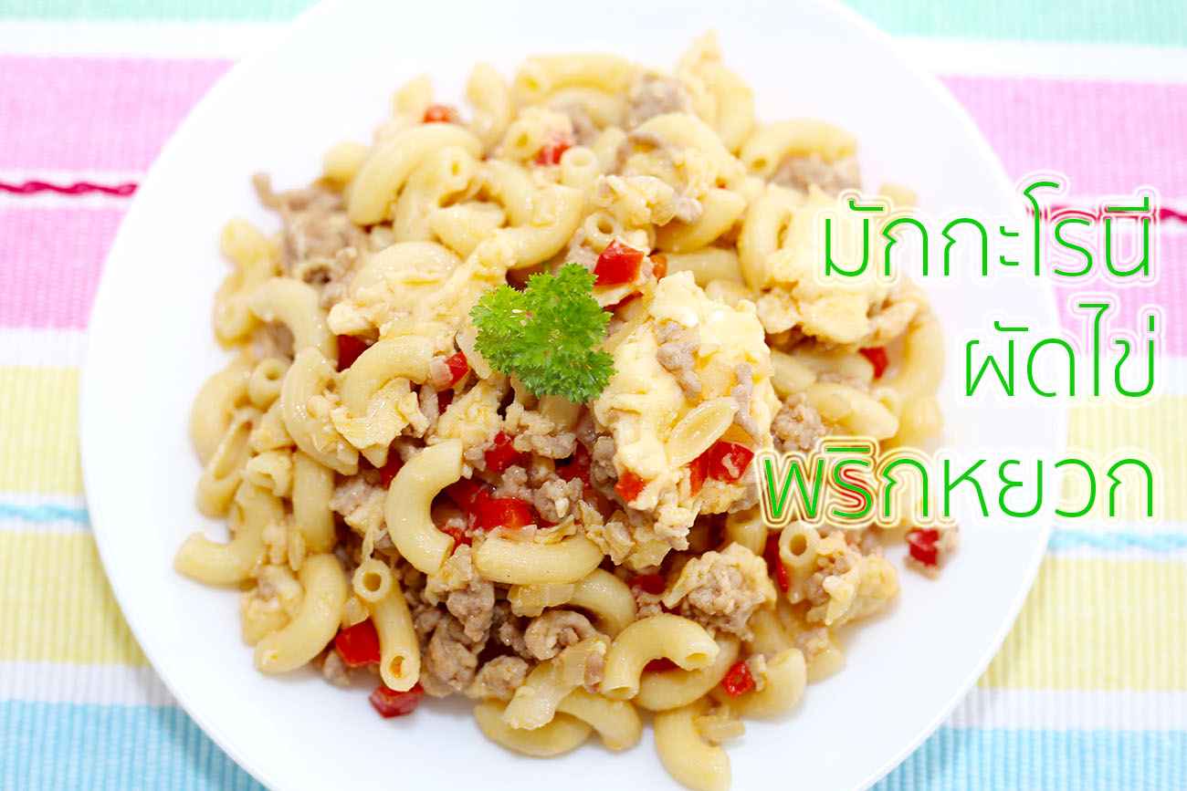 มักกะโรนีผัดซอสพริกเมนูอาหารจานเดียว