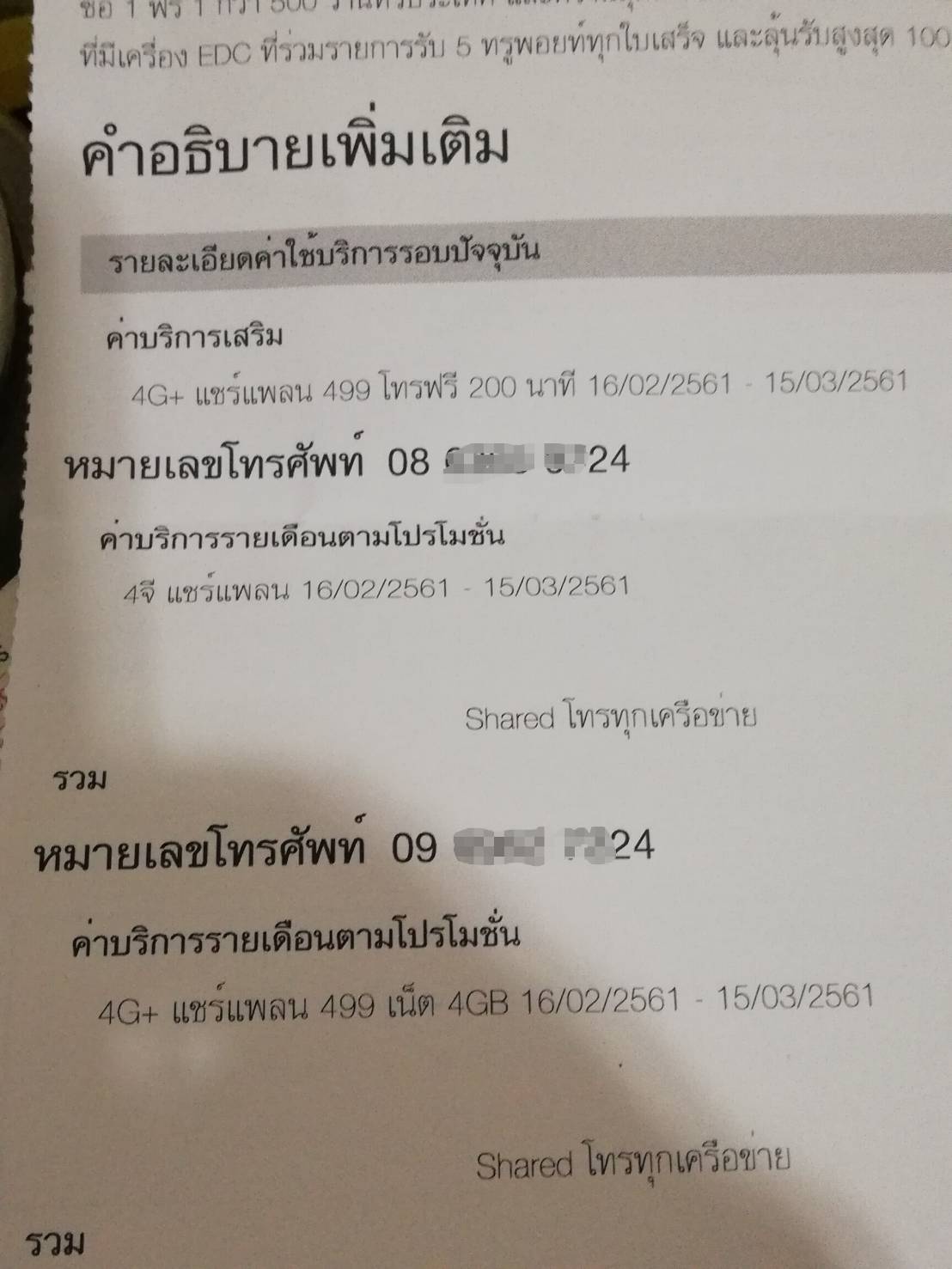 ปกติก็ใช้อยู่เบอร์เดียว แต่วันนี้บิลมาตามรูปเลยครับ