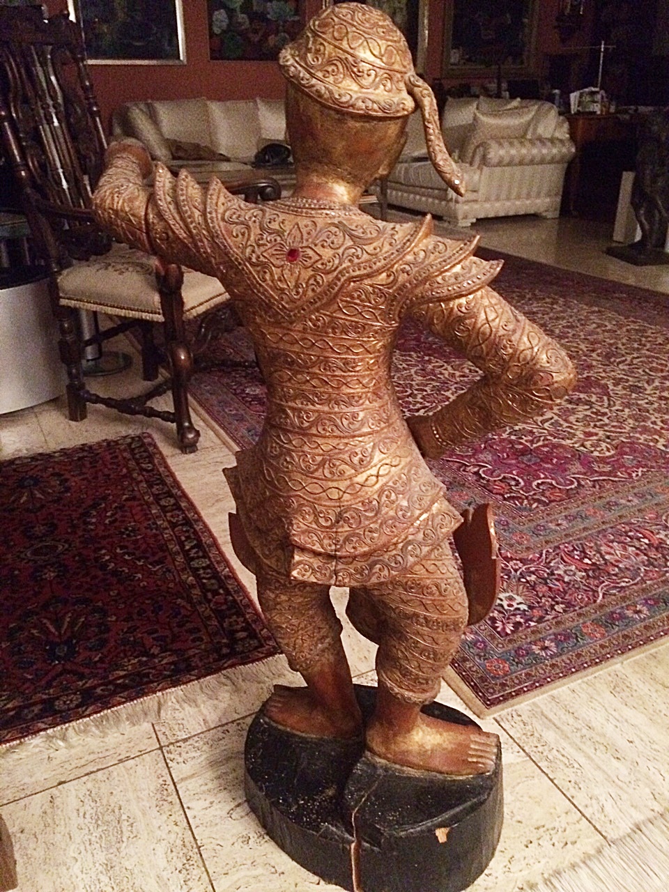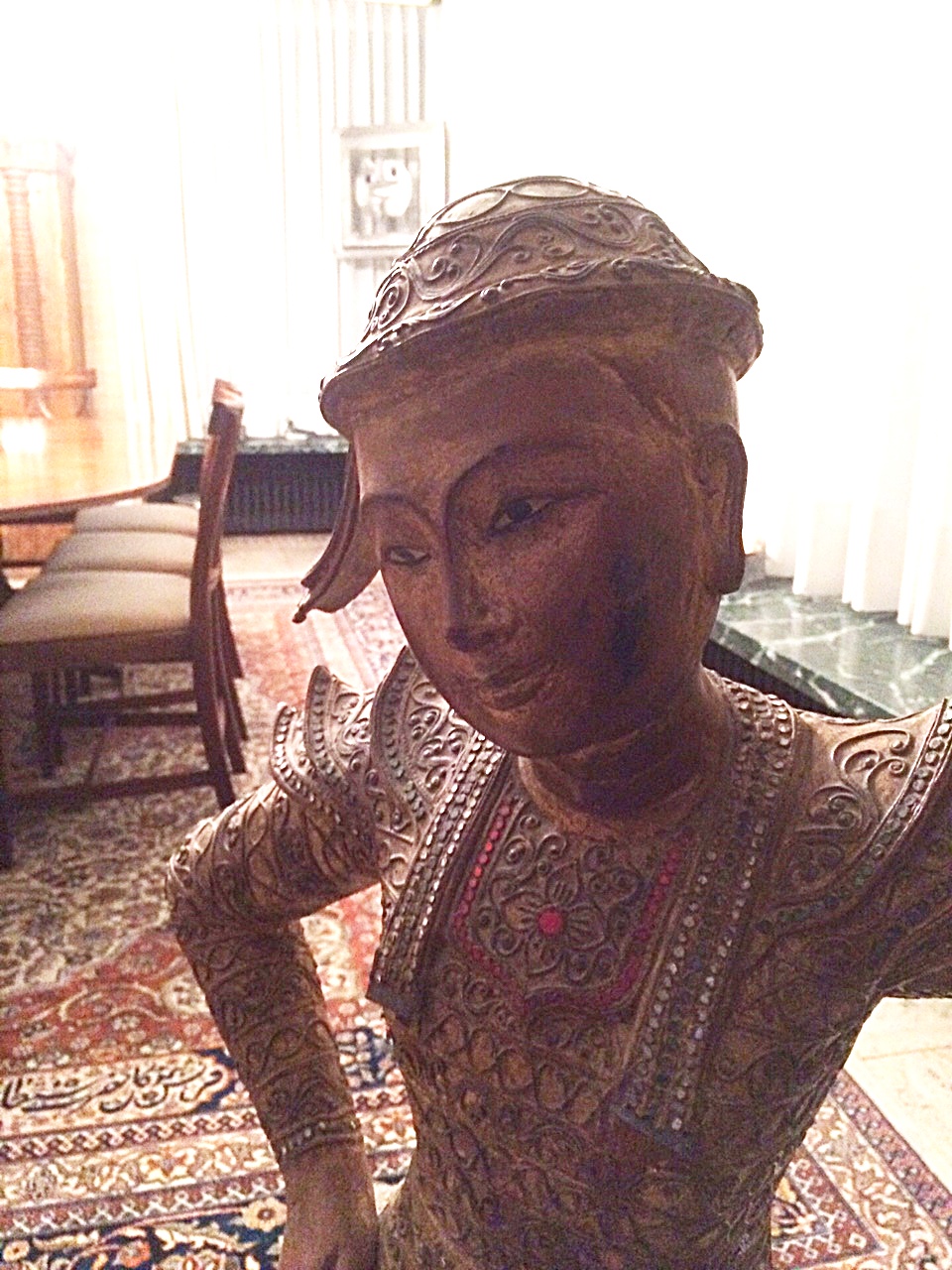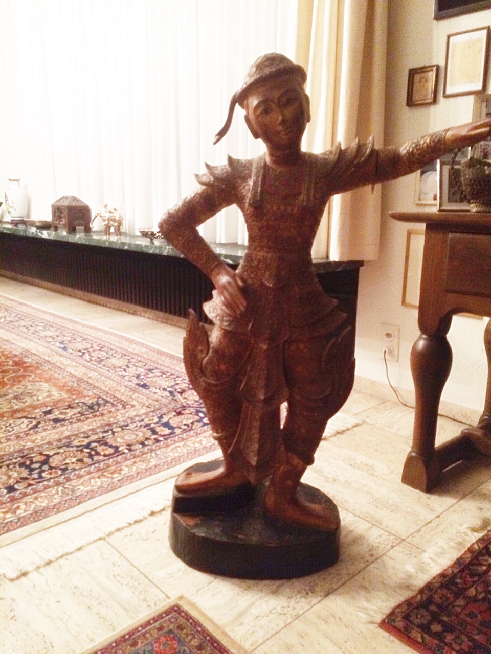ก้าวแรกที่เดินเข้าไปในบ้าน ก็ได้เจอกับรูปปั้นอยู่ตัวนึง ซึ่งแต่งกายคล้ายชุดไทย