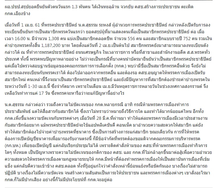 สรุปยืนยันตัวตนสมาชิกพรรค ปชป.วันแรก 1.3 พันคน ยอดเงินบำรุงพรรคทะลุล้าน