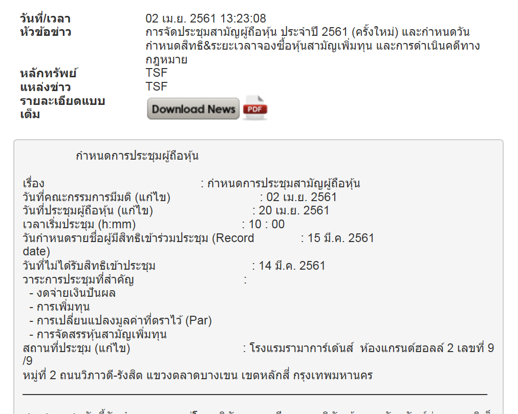 เรียกประชุม 20 เมษายน 2561 ไม่น่ามีปัญหาที่จะได้รับอนุมัติ