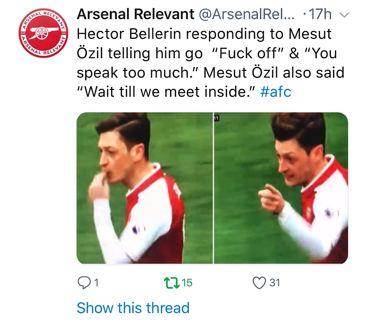 ว่าด้วย “เฮคเตอร์ เบยาลิน” และ “เมซุต โอซิล” หลังเกมส์พบ Stoke City