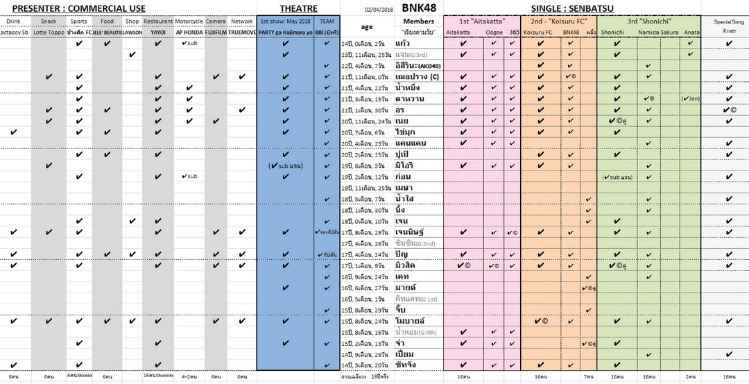 [PROFILE] BNK48 เก็บข้อมูลเรียงคนประจำเดือนเมษา'61 : เมมเบอร์ที่คว้าพรีเซ็นเตอร์8ตัวรวดได้แก่....