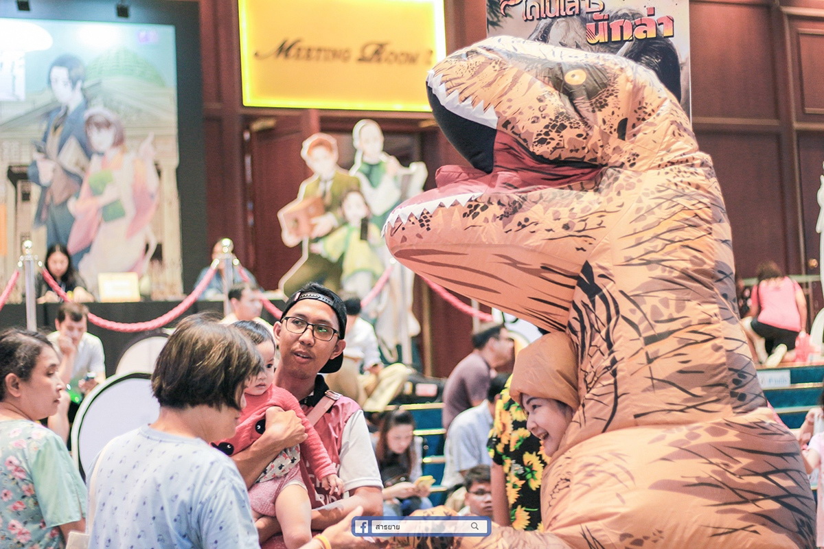 ภายในไดโนเสาร์เป็นพี่ผู้หญิงหน้าตาน่ารักกกกก ตอนเห็นไปเจอ แอบลุ้นว่าเด็กน้อยจะร้องไห้ไหมนะ (^__^)?