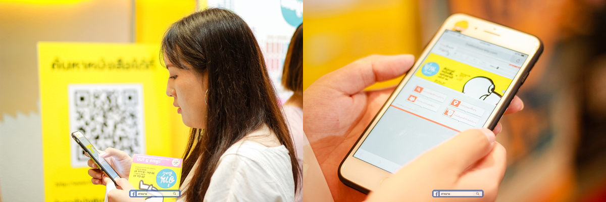 จะมี QR CODE ไว้ให้สแกนเข้าไปยังเว็บไซด์ของงานเพื่อทำการระบุชื่อหนังสือ หรือ สำนักพิมพ์ ที่ต้องการหา