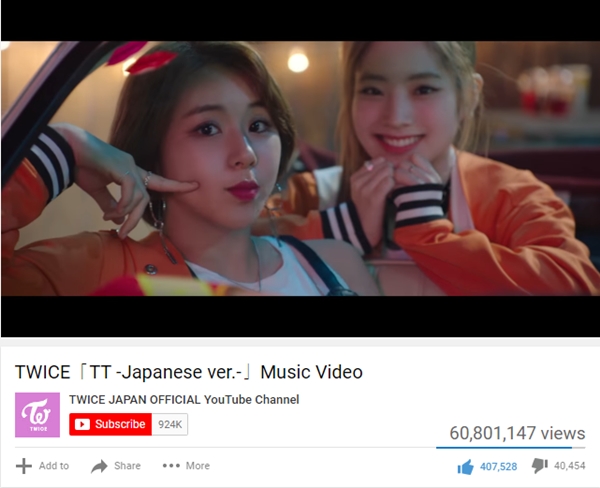 ผู้ชมวีดีโอ YOUTUBE ทไวซ์นับเป็นวงเกาหลีวงแรกเลยก็ว่าได้ที่ประสบความสำเร็จทางด้านยอดวิวเพลงญี่ปุ่นอย่างแท้จริง