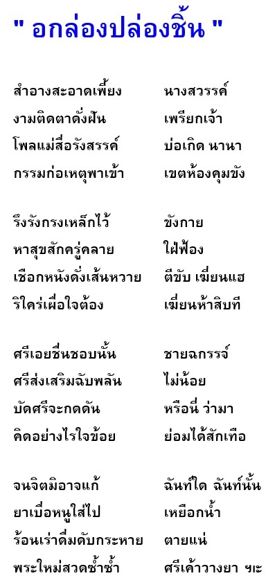 บทกวีนี้ให้ชื่อมาแปลกๆ ทีแรก กรรมการ นึกว่าท่านผู้เขียนเขียนผิด แต่ดูไปดูมา น่าจะจงใจเขียนมากกว่า