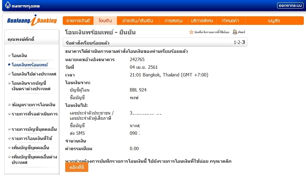 โอนเงินจาก ธนาคารกรุงเทพ เข้า บช Promptpay ธ.กรุงไทย ของแฟน ตัดยอดเงินแล้ว แต่เงินไม่เข้า บช กรุงไทย