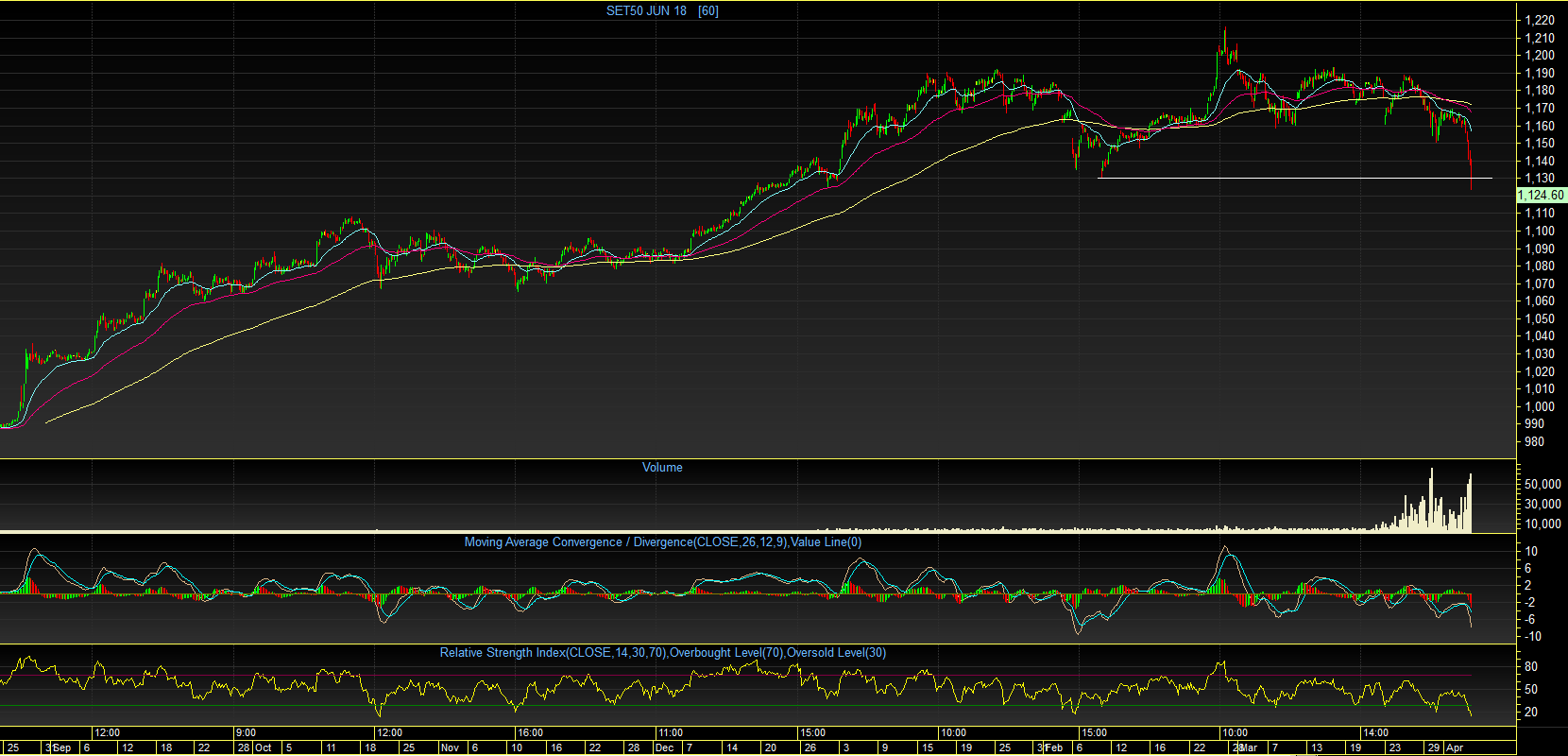 ทั้งนี้ ดัชนีได้ไหลร่วงหลุด แนวรับ 1130 จุด ลงไปอย่างง่ายดาย พร้อมกับปริมาณการซื้อขายมหาศาล หรือจะเรียกว่าเกิดรูปแบบ "Bearish Volume