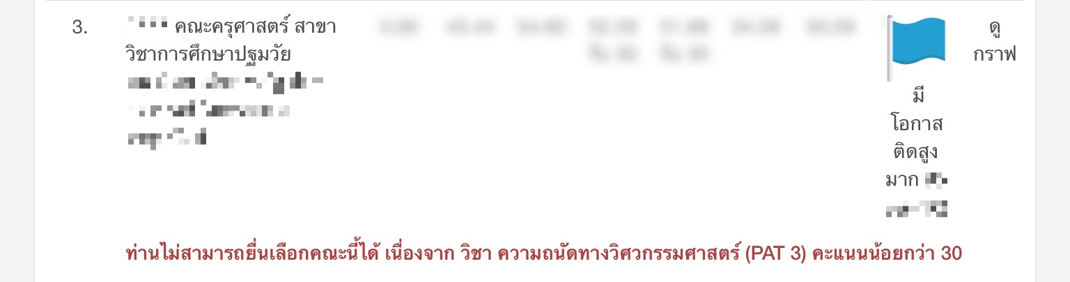 *ขอเบลอชื่อมหาวิทยาลัยและคะแนนไว้ เกรงว่ามีผลต่อชื่อเสียงของสถาบัน