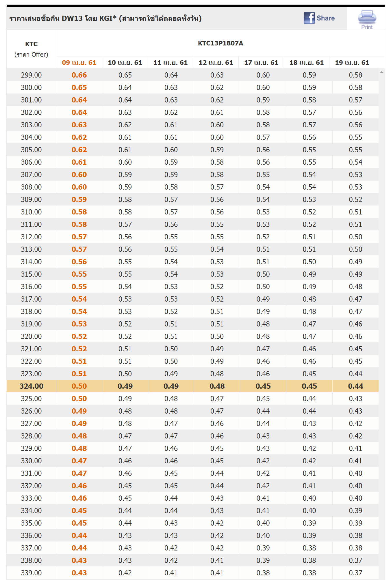 ราคารับซื้อคืนตามตารางอยู่ที่ 0.50 บาท