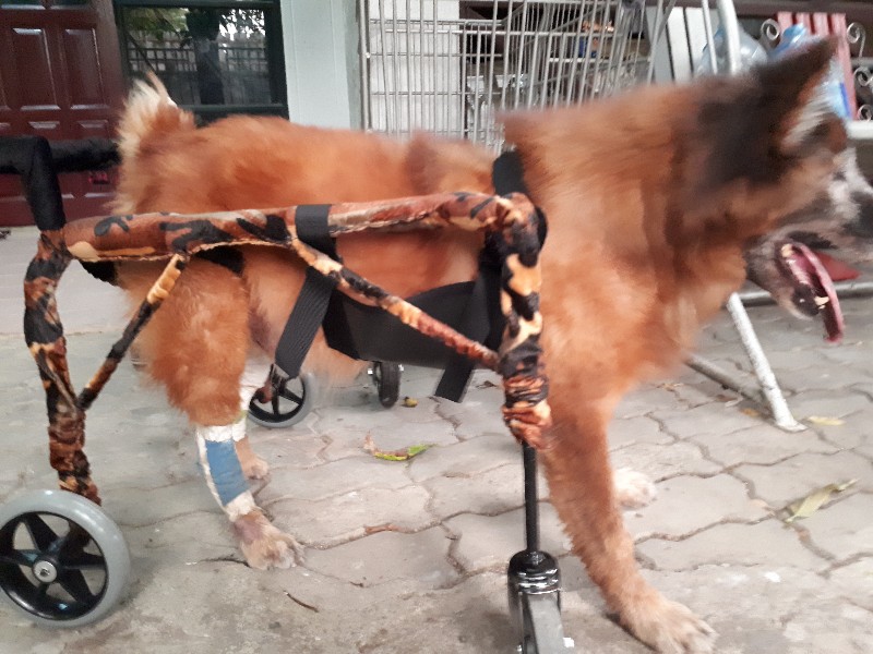 2. ห่วงที่ใส่ขาหลังน่าจะไม่พอดี เพราะขาหลังลอยนิดๆหนึ่งข้าง แต่เป็นข้างที่พิการ ก็เลยคิดว่าอาจจะดีสำหรับเค้าก็ได้มั้ง เท้าจะได้ไม่ลากไปกับพื้น (ยังไม่แน่ใจในความคิดนี้เท่าไหร่เลยค่ะ)