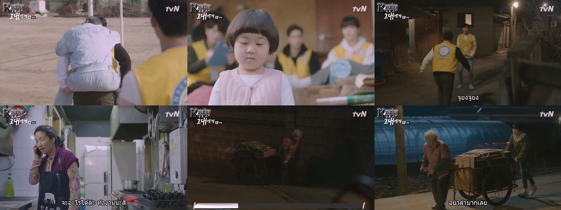 - คุณยายที่แม้จะเจ็บข้อเข่า แต่ก็ทำงานหามรุ่งหามค่ำ เข็นรถเก็บของไปเรื่อย เพื่อเลี้ยงหลาน (สงสารคุณยายมากครับ)
