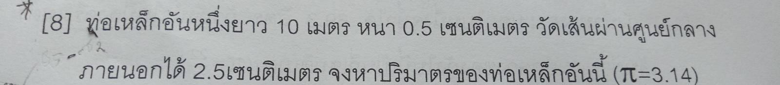 ความยาว 10 เมตร = 1000 ซม.ดังนั้น ปริมาตร = 4906.25 ลบ.ซม.