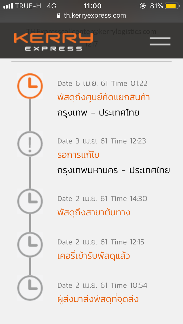 ส่งของ kerry เกือบอาทิตย์แล้วยังไม่ได้รับของ ต้องทำยังไงคะ?