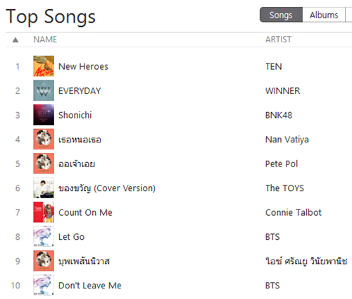 [T-Charts] รายงานชาร์ตเพลง ประจำวันที่ 10 เมษายน 2561 (AppleMusic/iTunes/Joox/Spotify)