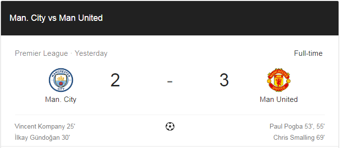 เกมดาร์บี้แมตช์สุดมันส์ Man City 2 - 3 Man United