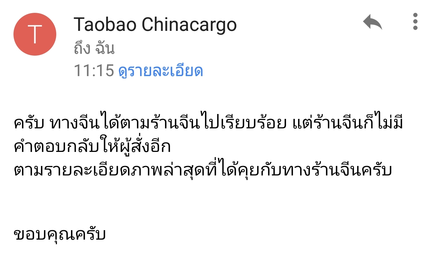 และอีเมล์ฉบับก่อนสุดท้าย มีสอบถามไปอีก ก็ได้รับแจ้งกลับมาว่า ได้ตอบลูกค้าไปแล้ว เมื่อวันที่ 3 ก.พ. 61