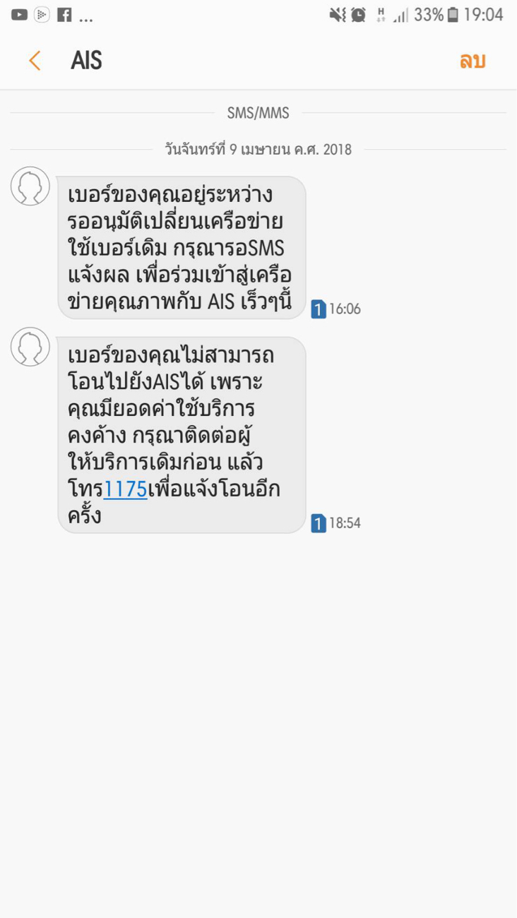 พอดีผมไปทำเรื่องย้ายค่ายจาก Dtac ไปยัง Ais แล้วก่อนหน้านี้ก็ไปเคลียร์บิลหมดแล้ว แต่ย้ายแล้วได้รับข้อความตามภาพนี้ แสดงว่าผมต้องไปทำเรื่องย้ายอีกรอบใช่ไหมครับ