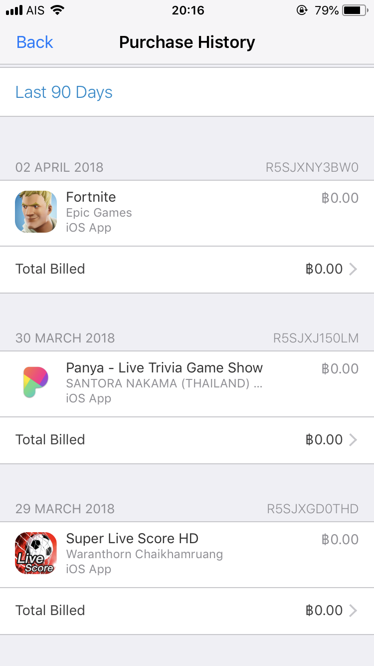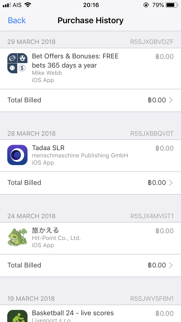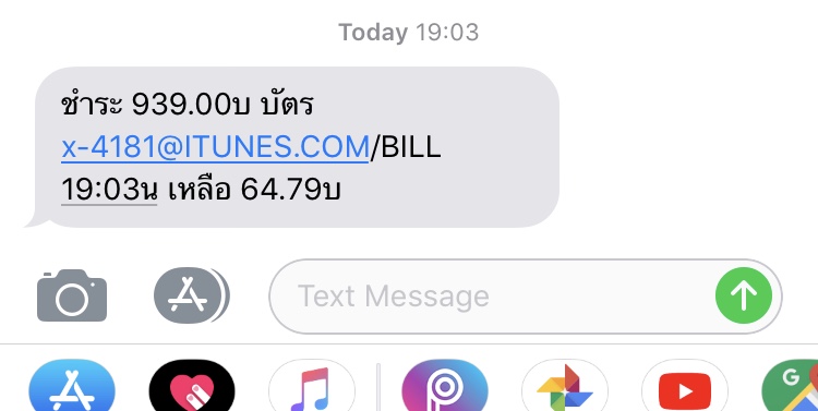 วันที่ 22 มี.ค 2562 มีข้อความเข้าว่า ถูกหักเงิน 209฿ จาก ITune/bill ก็ไม่ได้เอะใจอะไร คิดว่าแฟนคงจะซื้ออะไร (ใช้บัญชีเดียวกันกับแฟน2คน) แต่พอถามแฟนก็บอกไม่เคยซื