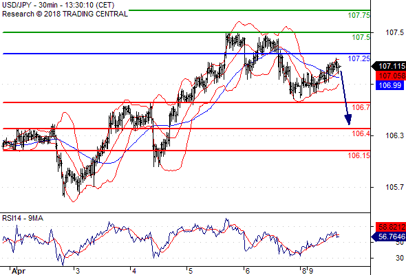 จุดที่ต้องการ: สถานะขายต่ำกว่า 107.25 เป้าหมายต่อไปที่ 106.70 และ 106.40