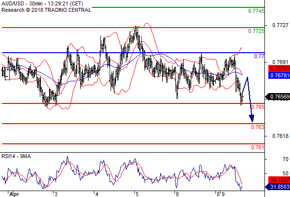 จุดที่ต้องการ: สถานะขายต่ำกว่า 0.7700 เป้าหมายต่อไปที่ 0.7650 และ 0.7630