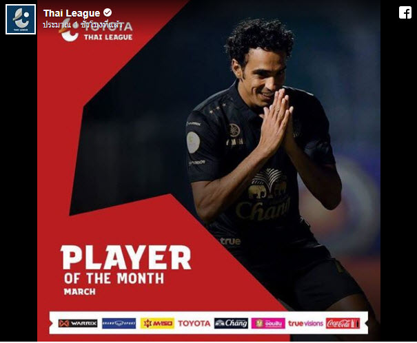 ทั้งนี้ในส่วนของ ดิโอโก้ หลุยส์ ซานโต เพิ่งคว้านักเตะยอดเยี่ยมประจำเดือนมีนาคม จาก โกล ประเทศไทย ไปครองเช่นกัน