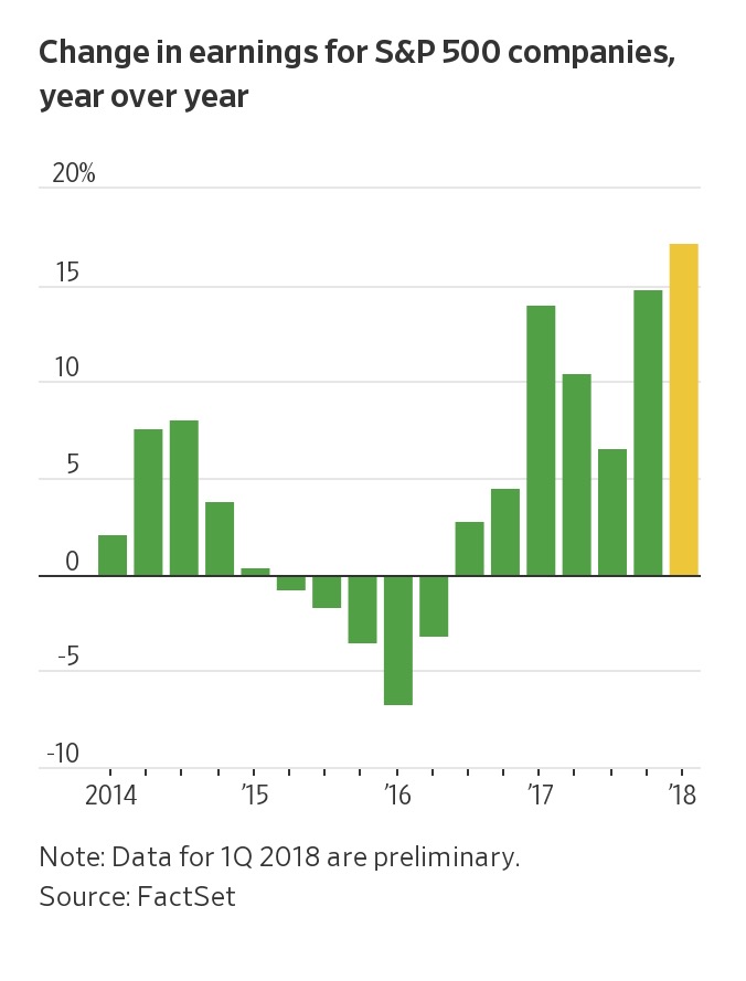 ผลประกอบการ ที่กำลังจะประกาศออกมา ใน Q1 2018 คาดจะเติบโตแข็งแกร่งมาก จะช่วยหยุดการตกของหุ้น อเมริกาได้