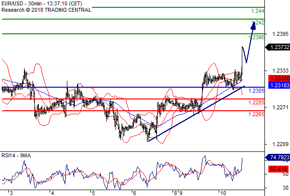 จุดที่ต้องการ: สถานะซื้อสูงกว่า 1.2305 เป้าหมายต่อไปที่ 1.2395 และ 1.2420