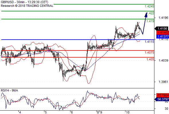 จุดที่ต้องการ: สถานะซื้อสูงกว่า 1.4115 เป้าหมายต่อไปที่ 1.4190 และ 1.4220