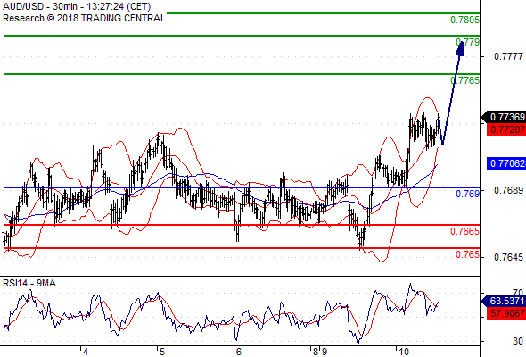 จุดที่ต้องการ: สถานะซื้อสูงกว่า 0.7690 เป้าหมายต่อไปที่ 0.7765 และ 0.7790