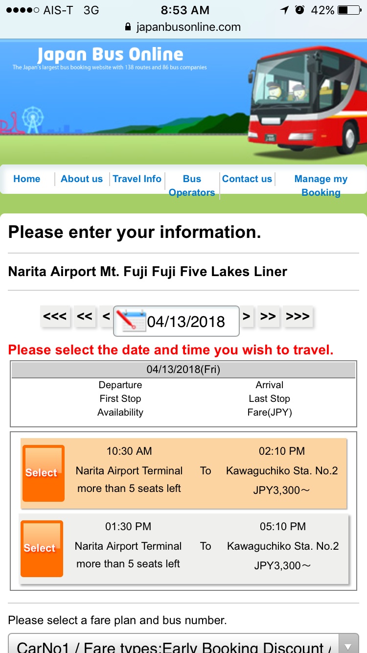 มีใครเคยจองตั๋วออนไลน์หรือขึ้นรถบัสจากสนามบินนาริตะไป Kawaguchiko บ้างคะ